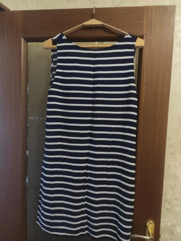 Сукня Mango з красивим вирізом по спині (занижена спинка). Розмір L, підійде і на М, якщо подобається вільний крій. Заміри ПОГ 47 см, ПОТ 49 см, довжина 85 см. Спереду трохи (в деяких місцях) як наче перейшла фарба з з синьої поломки на білу. В очі не кидається, два останні фото. Дивіться також інші мої оголошення багато цікавого.