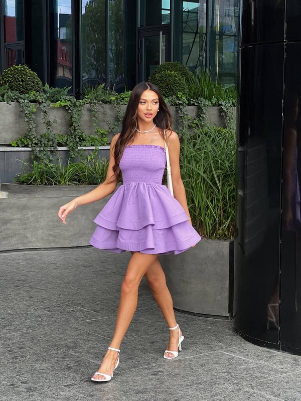 Льняное платье с двойной пышной юбкой на груди и спинке на резинке