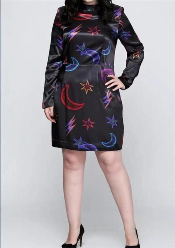 Атласное платье в интересный принт от H&M. Размер на бирке 44. ПОГ 52 ПОТ 42,5 ПОС 55,5 Длина 92 см Рукав-61 см Плечи 41,5 см На подкладке. Верхний слой и подкладка 100% вискоза.