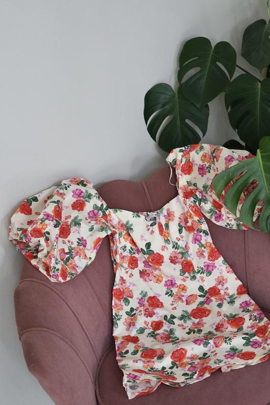 Сеное платье ZARA, размер S, новое, с пышными, эффектами рукавами, в цветочный принт, подчеркивает фигуру