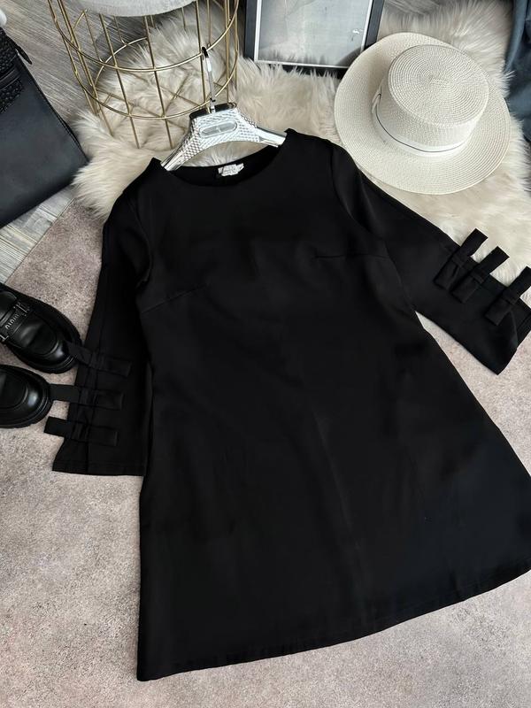 Сукня з бантиками. Модель: 0701 GR Колір: чорний. Розмір: 42-44,46-48,50-52, 54-56 Тканина: Костюмна тканина тіар. Гарно лягає по фігурі, приємна на дотик. 42-44 Об г - 96 Об б - 118 Дл и - 83 Дл р - 49 46-48 Об г - 100 Об б - 124 Дл и -86 Дл р -50 50-52 Об г - 108 Об б - 130 Дл и -89 Дл р - 51 54-56 Об г - 114 Об б - 136 Дл и -92 Дл р - 52