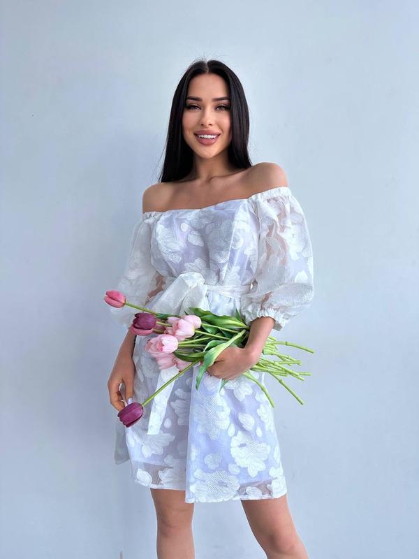 Сукня 2881 Размеры 42-46,48-52 Р 42-46. Пояс у комплекті. длина 90см Груди 96см Юбка на сборке 130см Р 48-52 обхват груди 110см Ткань органза, подкладка хлопок. Цена 685 грн