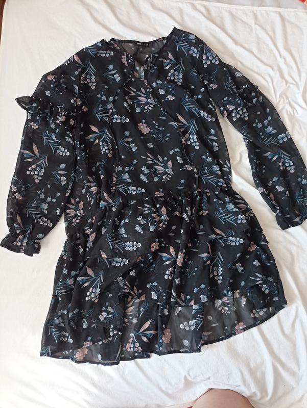 Черное платье с цветочным принтом