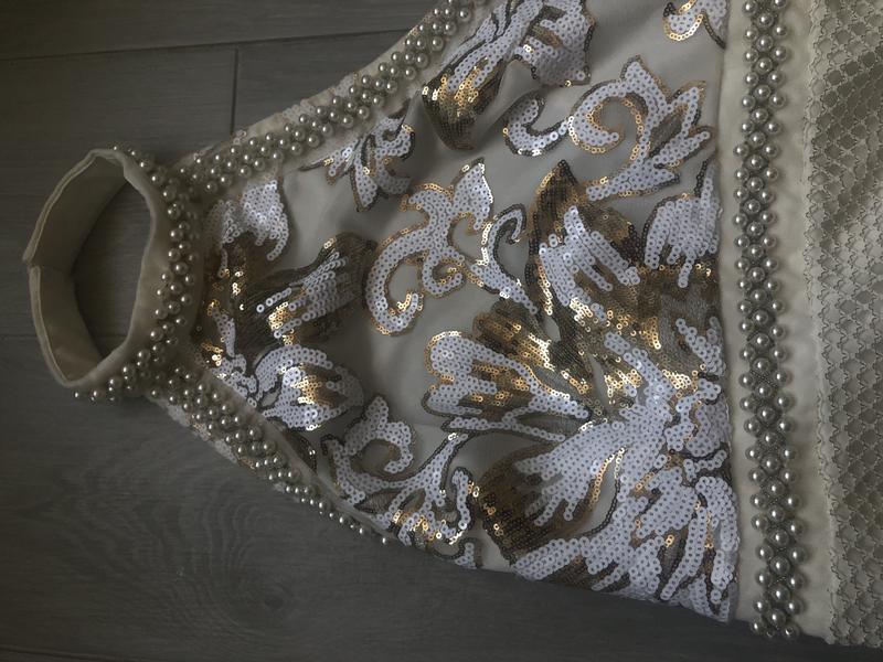 Одетая была 2 раза. Состояние: идеальный. Всего чуточку замочек тяжело ходит. (Тяжелая весит до 1 кг так как есть много бусинок) Дополнительные фото могу придать!