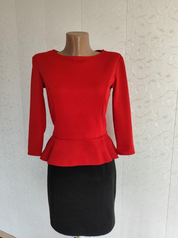 Очень красивое платье с баской. Рукав три четверти. Верх красный, низ черный. Замеры длина 80 плечи 40 рукав 40 грудь 43 талия 35 материал тянется