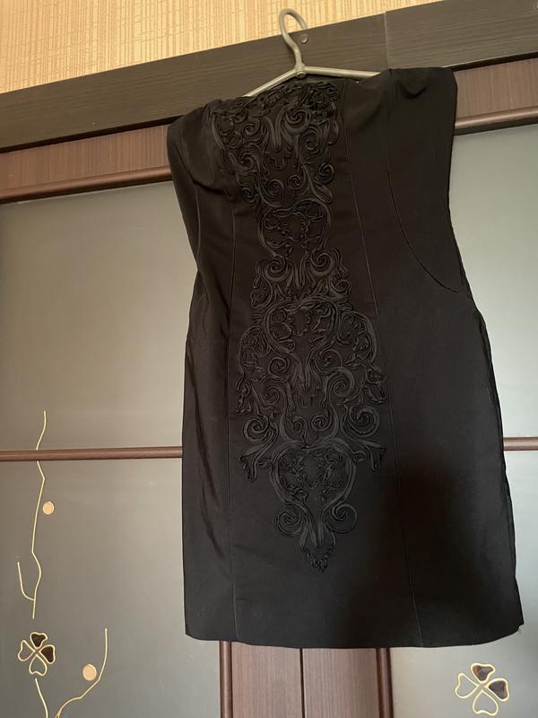 Имеет силиконовую ленту которая должна держать платье, но также можно вставить бретели, длина платья 73см (без брителей), пог 39-40см