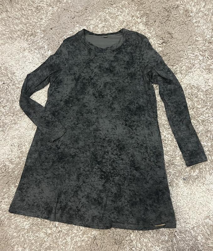 Женское платье с приятного трикотажа.. По бокам карманы .Состояние идеальное .Полу обхват груди 45 ,бёдер 59 .Длина платья 80 ,длина рукава 57 .