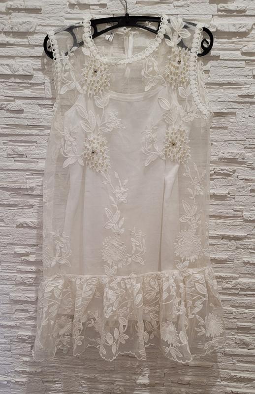 Біла сукня з органази з вишивкою