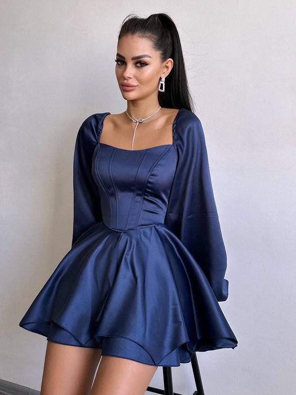‼️Платье под пошив, ожидать 3-7 рабочих дней!️ *Актуальные сроки отправки уточняйте у менеджера в чате перед заказом Атласное корсетное платье с пышной двойной юбкой и объемными рукавами 10 цветов ▫️ткань: королевский атлас ▫️размеры: S и М (L + 250 грн)
