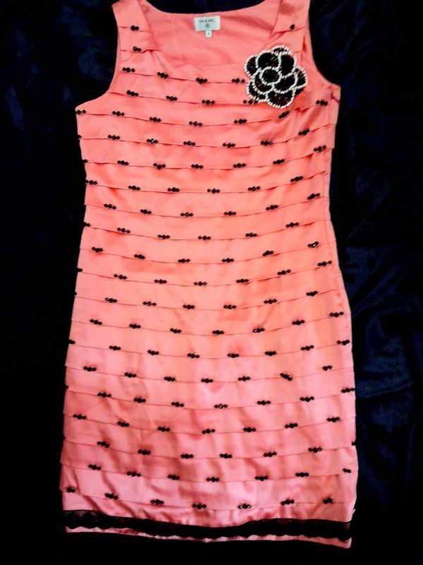 Платье Шанель, малое Вам этого, так оно из настоящего шелка, это красивая, изысканная, очень качественная ткань из натурального шелка, бирка с составом присутствует, на ощупь очень приятная. Розовый пудровый насыщенный цвет камера точно не передает, это зависит от Вашего гаджета, шелк через белки очень трудно запечатлеть, оранжевого оттенка не содержит, в реалии цвет ближе к розовому среднему между первым и последним фото. Шанель на каждый день не таскят, так что платечко незаношено. Выглядит дорого и нарядно. Замеры: длина: 95-97-+см. от плеча по спинке до низа. на фигуре слегка подскочит. ширина спинки 36-38 +-см. примерно на груди 44-45+см это мах. талия 38-40 см. полуобъем бедра свободно 50см.. Это все полу объем. не надо уровняться на максимум, по фасону платье должно красиво сесть. Такой фасон подходит именно Леди. Статусное изысканное, дорогое, красивое, женское, непревзойденное уместное и на праздники и всплывающее коктейльное платье расшитое вручную бисером в шахматном (не симметричном) порядке с добавлением различного количества в размер бусин (бусин) и украшено великолепным кружевом. Это отличный выбор, подойдет даже невесте, которая любит минимализм и/или неповоротки навести. Смотрите свои предложения, к этому великолепному платью у меня еще можно подобрать сумку, или верхнюю одежду или сорнцезастичные очки. На товар с меньшей ценой возможна сутевая скидка при покупке обеих вещей вместе, что-то вообще можно получить в подарок вместе с приобретением. К шубе стоимостью более 9000грн, это платье можно получить в подарок. Платье пойдет на рост 155-185см. Состояние отлично без значительных нюансов, но оно приемо, это так, его носили. Торг является резервом нет. Пересылаю после 100% подписки. Положительно реагирую на предложение собственной цены, но покупать при ее согласовании следует сразу, цена согласовывается не всегда. Наложенного нет. Всем Мирного неба и удачных угости. Это платье можно получить в подарок к любому из своих вещей стоимостью более 9000грн.