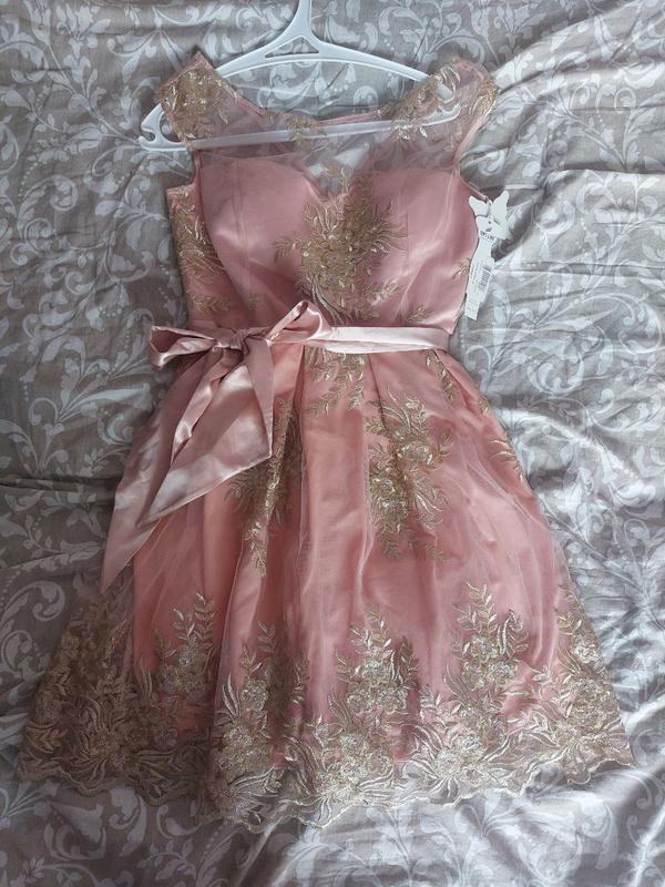Платье персикового цвета с золотистой вышивкой. Новая с биркой.