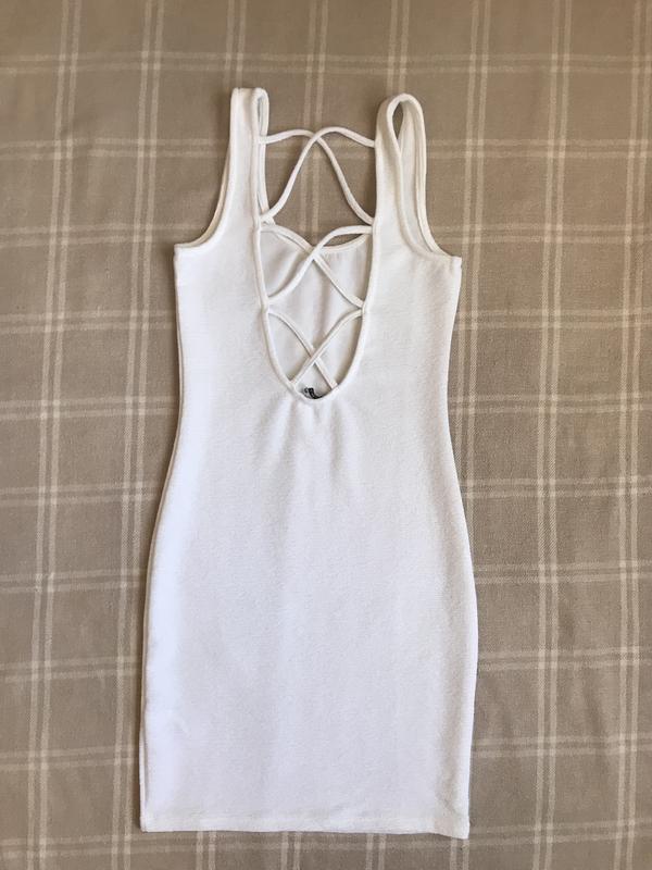 Стильное белое силуэтное платье Terranova, эластичная ткань, интересная спинка, размер S, состояние нового