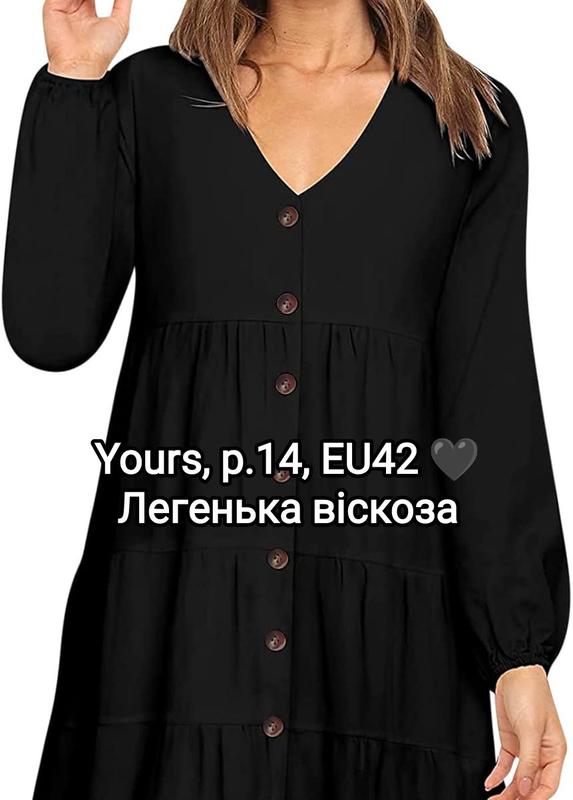 ❗БАГАТО ЯКІСНОГО ОДЯГУ В ПРОФІЛІ❗❤️🔥 ОТ МАЛЕНЬКОИХ РАЗМЕРОВ К ОДЕЖУ НА ПИШНЫЕ ФОРМЫ!🌹ЗАЩИТАТЕ, БУДУ РАСДА ОТДООТРЕБЛЯЯ НА ВАШИ широкий пояс 🌿 📍 Легкое ярусное платье из 100% вискозы от Yours, свободного кроя в черном цвете 🖤 Состояние новой вещи. * Фото на модели для вдохновения 🌹🖤 Качество прекрасной 💗 Пуговицы функциональные. Вискоза тоненькая, воздушная и дышащая. Рукавички на резиночках. Отличный вариант под кроссовки или кеды) Длина мини, но не закоротка, то что надо☺️ 🏷️ Размер указан 14, EU42, можно на M-L, но обязательно ориентируйтесь на замеры, пожалуйста, вещь должна сидеть свободно: полу охват груди - 53 см, полуобхват талии - 49 см (нижже идет первый ярус ткани), длина от плеча - 84 см, рукав - 58 см. Платье не тянется, рахуйте свободу облегания, пожалуйста 💗 ❤️🔥 Не уверены? Есть Безопасная оплата, сможете осмотреть вещь перед получением! 🥰 📍 Если у вас остались вопросы - пишите, рад ответьте 🥰 ❤️В профиле много интересного, заходите, пожалуйста❤️🔥 Делаю частые обновления, так что подписывайтесь, чтобы не пропустить что-то безумно нужное😁 С ❤️ РЕЧИ С СЕРЦОМ 💋