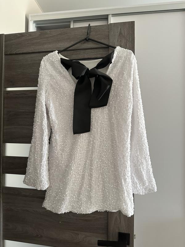 Отличное платье с бантом на спине, короткая, свободного кроя