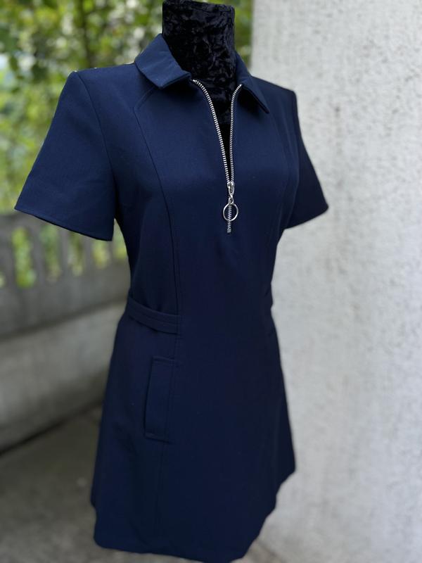 Темно синее платье, плотная эластичная ткань приятная к телу (в составе 23% вискоза) дууже красиво ложится по фигуре. С белыми кедами или кроссовками смотрится😍😍😍💞размер указан 36, будет на с/мин. Замеры: длина 81, плечи 37, пог 44 (спереди по груди + вытачки), пот 37, поб 45 отлично тянется