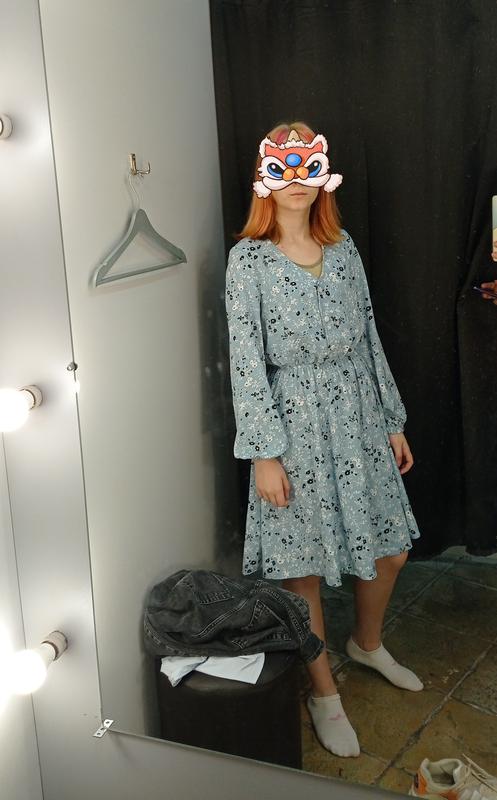 Платье почти новое, одето один раз, размер xS (42-й) талия на резинке, пришитый пояс, V-образный вырез горловины, спереди застегивается на три пуговицы, низ трапецивидного покроя, низ рукава на резинке. Ткань легкая, на ощупь вискоза.я длина платья по спине - 94 см длина рукава - 60 см длина спереди до резинки пояса -40 см. дам дополнительные замеры при необходимости.