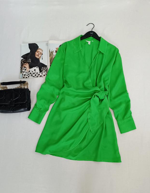 🌿зеленый платье H&M завязывается на запах, ткань вискоза с эффектом атласа Размер:М Замеры:ПО груди 48 см, талия регулируется, длина 87 см, рукав от горловины 74 см