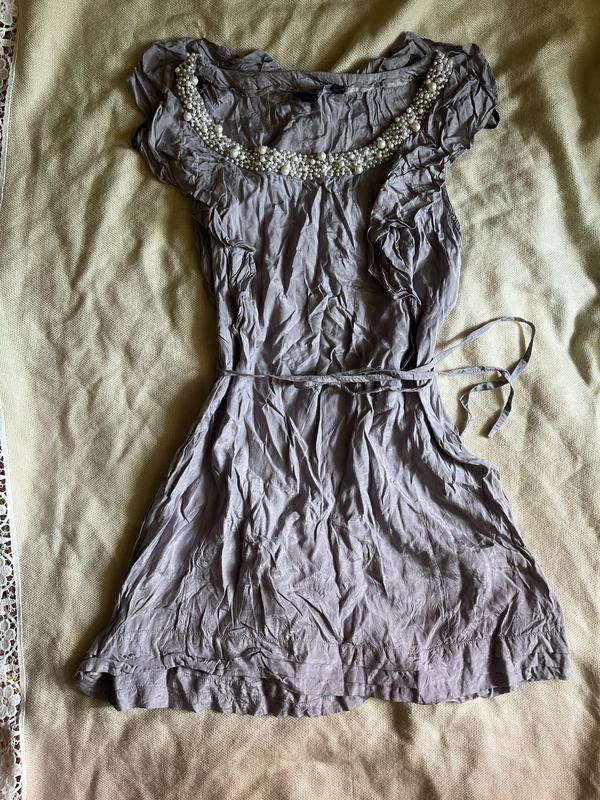 Платье фиолетовое с серым оттенком и воротником из бисера Размер:14( M/L) Цена:100грн