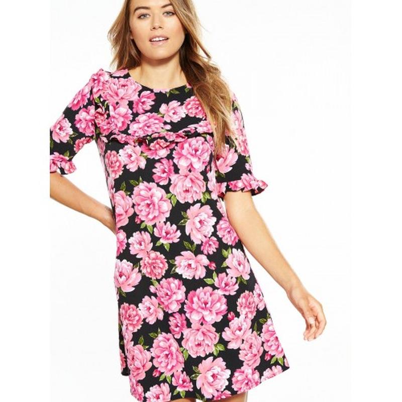 Фирменное платье V by verу c цветочным принтом. Свободного кроя, "трапеция". По груди и по низу рукавов воланы. Сзади потайная молния. Размер: 12 евро, наш 46 р., см. замеры. Цвет: черный, розовый. Цвета яркие, насыщенные. Материал: 98% полиэстер, 2% эластан, немного тянется, не просвечивает. Состояние: новое, с биркой. Длина: 88 см., ПОГ 50 см., ПОТ до 54 см., ПОБ до 60 см., по низу ПО 78 см. 100% оплата на карту ПриватБанка. Наложенным не высылаю! Самовывоза, примерки и т.д. нет. Только пересылка за счет покупателя: Укрпочта +3 грн. за упаковку/пакет или Новая почта. Возврата, обмена нет. Смотрите другие мои объявления, фирменные вещи по приятной цене.