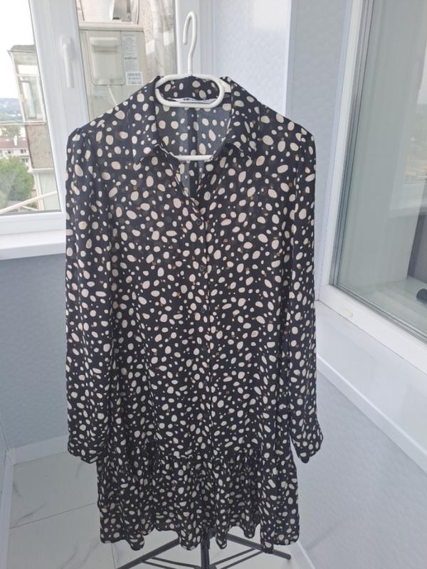 красивое платье черно-бежевое с золотыми вкраплениями, А- фасона, имеет по низу волан, воротничок; расстегивается полностью; имеет отдельный подклад на тонких брителях ороз-во Турция размер 38 м длина 94 пог 50, дальше свободно