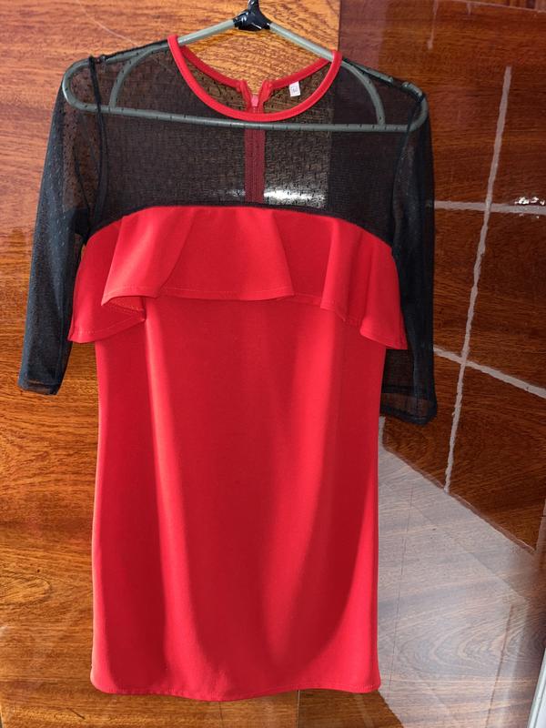 Вечірня сукня,44 розміру, прямого крою,має дефекти(видно на фото) його можна підшити і навіть нічого видно не буде,сукня вище коліна,рукав в тричетверті. Сукня яскраво-червоного кольору ,яка підійде всім дівчатам!