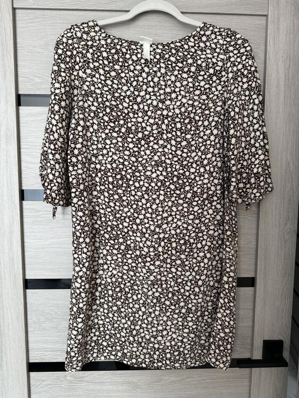 Сукня коричнева в квітковий принт H&M. Дуже ефектні вирізи на рукавах! Прямого крою. 100 % віскоза. Розмір S (36). Довжина - 89 см. ПОГ - 48 см. ПОТ - 48 см. ПОБ - 50 см.