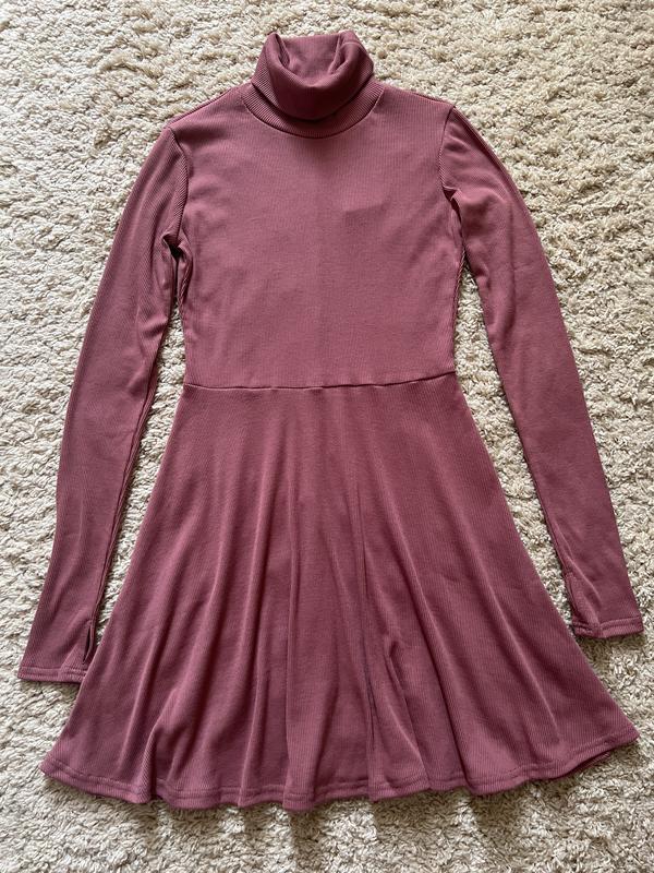 Гольфиком плаття в дрібний рубчик з вирізом на пальчик