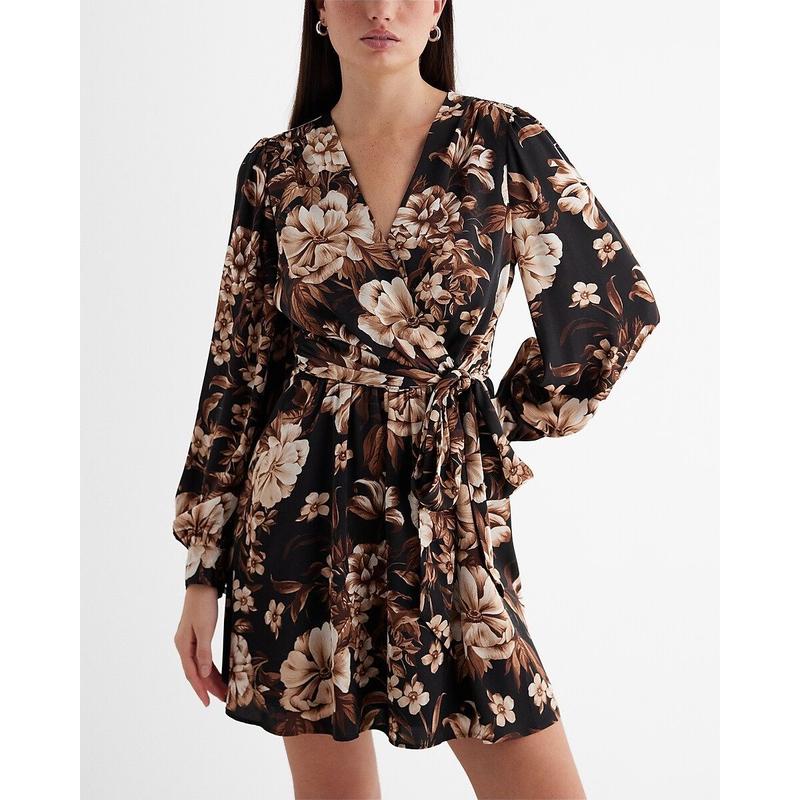 Шифонова коротка сукня з довгим рукавом квітковий принт