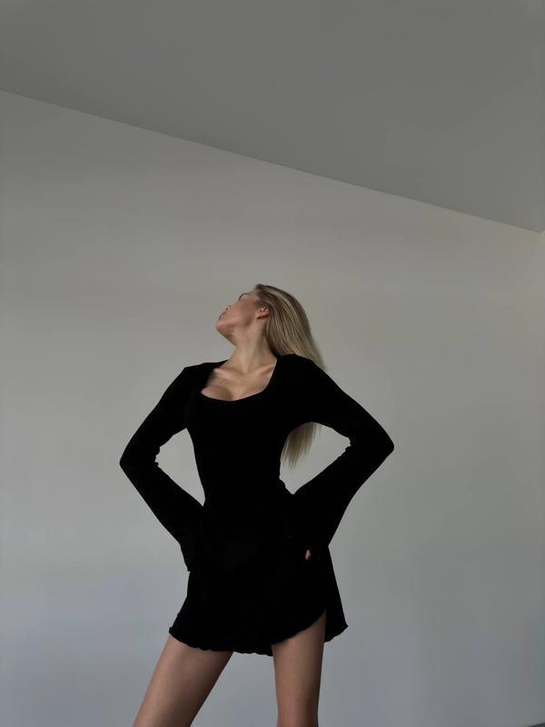 ms: 049 Ну, тут не встояти. Нам кажется, что в наших гардеробах точно не хватает этого бомбезного платья... Спинка корсет затяжка, которая сделает талию еще идеально Цвет: Черный Размер : S-L Ткань : двухсторонняя ангора