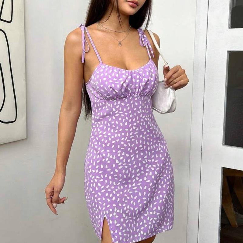 Платье лиловое фиолетовое в горошек с бюстом с разрезом на ноге бюстье шейн shein короткая...