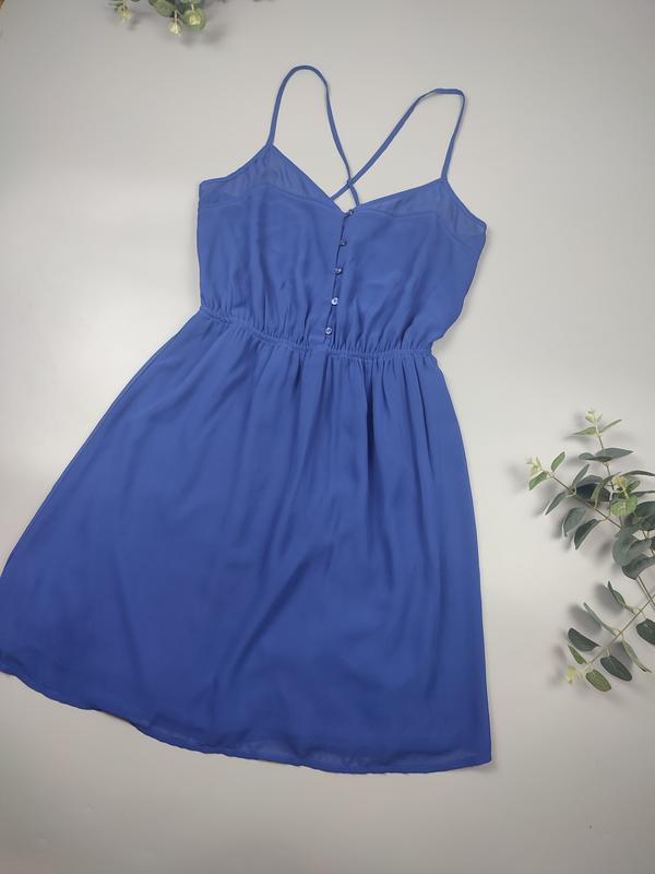 Красивое синее платье с талией на резинке. Платье имеет бретельки, хорошо тянется. Стан - идеальный, новой вещи. Размер подойдёт от S до L. Замеры: Полуобхват груди - 42 см, тянется до 45 см Полуобхват талии - 30 см, резинка тянется до 40 см Длина с бретельками - 85 см