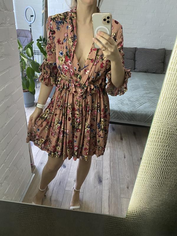 Стильне плаття з красивим вирізом декольте. Цікавий незвичний крій. Верхня частина з тканини жатки, нижня гладка. У мене параметри 84/64/94. Підійде на м і л. На мене трохи вільне, тому буде і на більші параметри. Талія на резинці. Є підклад. Довжина 88-90 см. Відтінок вживу середнє між першим і другим фото.