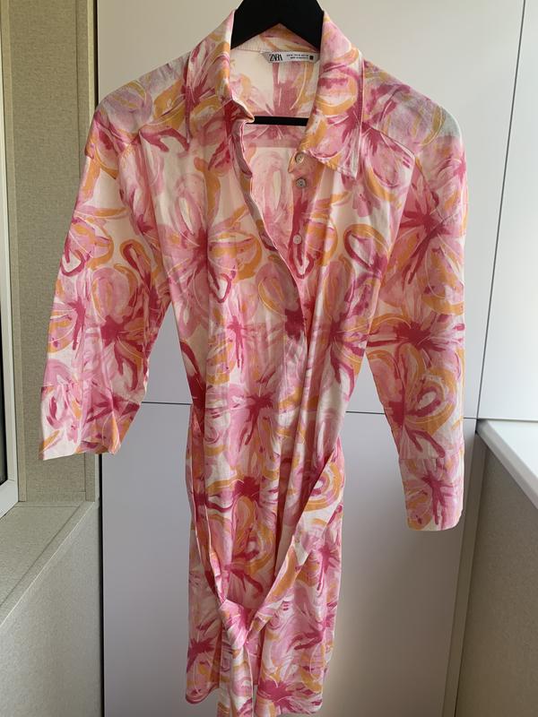 Сукня від Zara Розмір - М Матеріал - льон, віскоза Заміри: ПГ - 54 ПБ- 58 Довжина - 86
