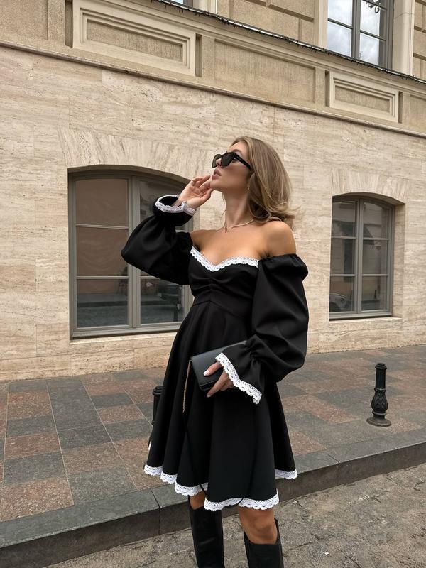 Сукня Мод: 4942-294 ▪️Размер: 42-44, 44-46 ▪️Тканина: костюмка люкс + мереживо ▪️Цвет: черный с белым кружевом, белый с черным кружевом