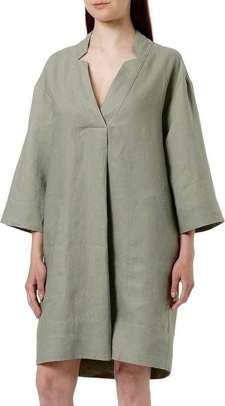 Сукня крою кафтан відомого бренду noa noa 💥 Цупкий міцний 💯 flax льон!😍 шикарно тримає форму! Досить щільний За рахунок чого сукня доволі не тонка, підійде на ранню осінь Гарний відтінок чи то шафлія чи то хакі 🤔, але в будь якому випадку- цікавий і можна р універсальний в плані комбінування Сукня нова Фасон релакс-релакс 👌 Є кишені по обидва боки Рукав широкий, вкорочений Розмір М /Л плюс Довжина 104 ПоГ 64 Рукав від горловини 68