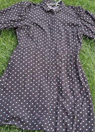 платье в горох, покупала тут на шафе, носила но не много, материал вискоза, рукава фанарики, на размер 48-50, ц меня 50р я носила цена 120