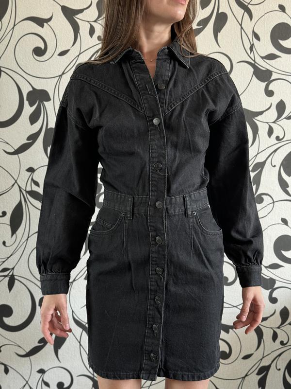 Размер XS Стан идеален, никаких нюансов! Цвет черный. Тканина джинс. Длина мини. Замеры: Плечевой шов приспущен - 52 см ПОГ - 45 см ПОТ - 33 см ПОБ - 46 см Длина - 86 см Рукав (от плечевого шва) - 49 см