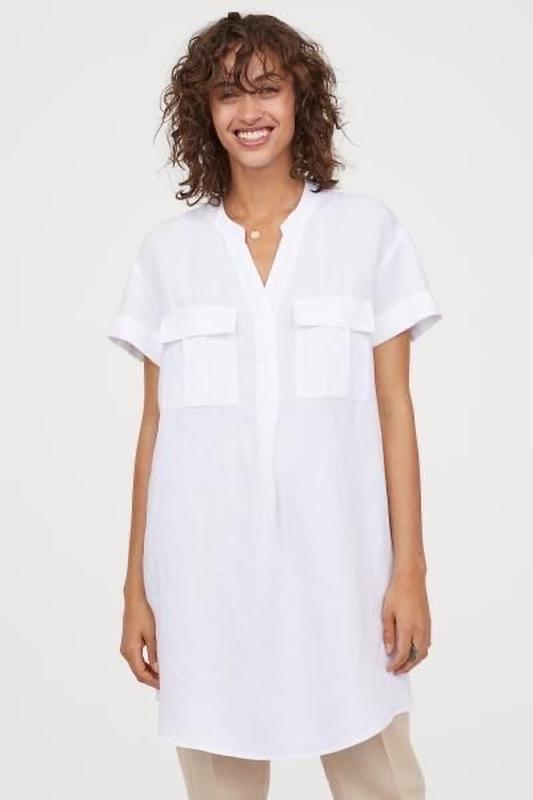 Платье рубашка h&m, льняное платье, короткое платье, платье а силуэта, короткое белое...