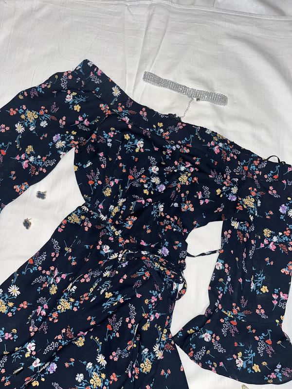 Короткое платье в цветочный принт,меет тоненький поясок,размер с