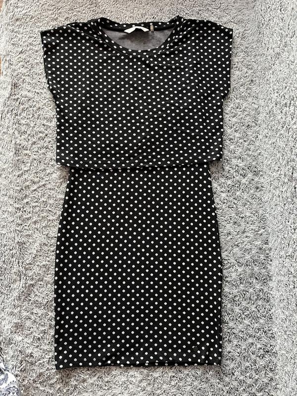 Сукня без рукавів, чорна в білий горошок. На осінь, весну. Розмір: S Склад: 65% поліестер, 32% віскоза, 3% еластан