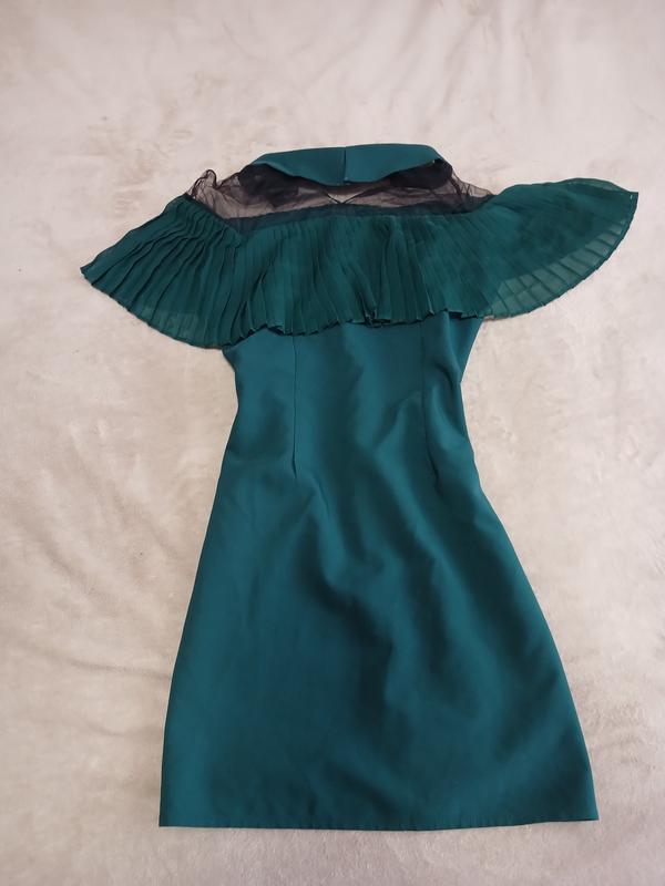Платье темно-зеоенного цвета, со вставками сетки. Сидает по фигуре, фасон подчеркивает талию, размер S-M