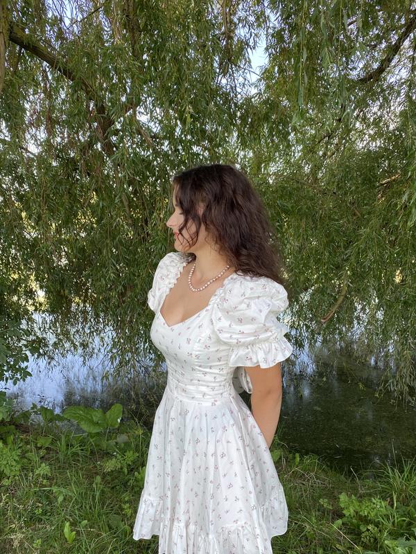 короткое платье с трендовым рукавом и очень красивой спинкой