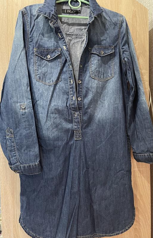 Платье-рубашка из джинса под ремень Хорошее состояние, лишь отсутствие ремешка, который был в комплекте Обхват 93 см Длина 90 см Рукав 59 см