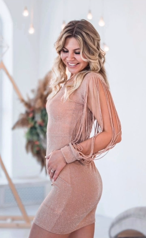 Маленька сукня із трикотажного полотна зі стрейчем та металевим блиском, ізюмінкою цієї сукні - це рукава. Розмір М, надягається через голову (без застібок). ПОВЕРНЕННЯ та ОБМІНУ ТОВАРУ НЕМАЄ! Підписуйтесь та дивіться інші мої товари, так Ви зможете знайти цікаві ексклюзивні речі. Буду щиро рада співпраці з Вами.