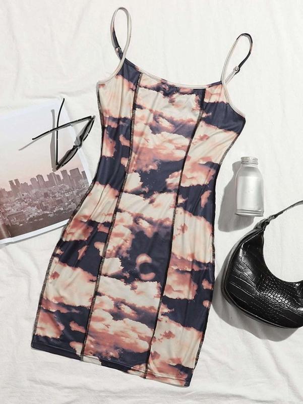 Платье пэчворок с принтом облаков