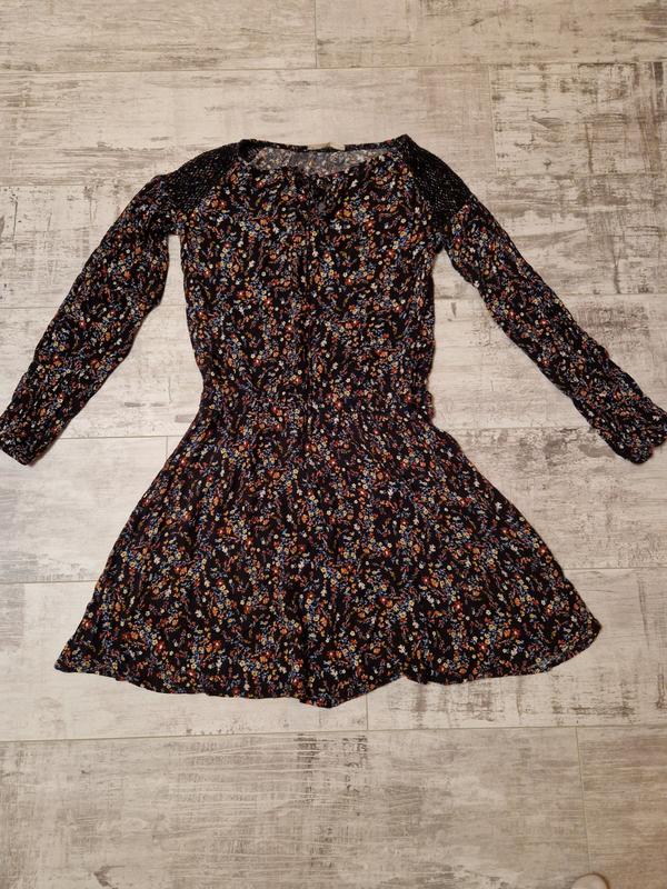 Штапельное платье в цветочки. Ткань: жатка штапельная Идеальное состояние.Оденена один раз. ОТ -34 см. на резинке Длина - 81 см Длина рукава от горловины - 60см рукав отделан вязаной сеткой