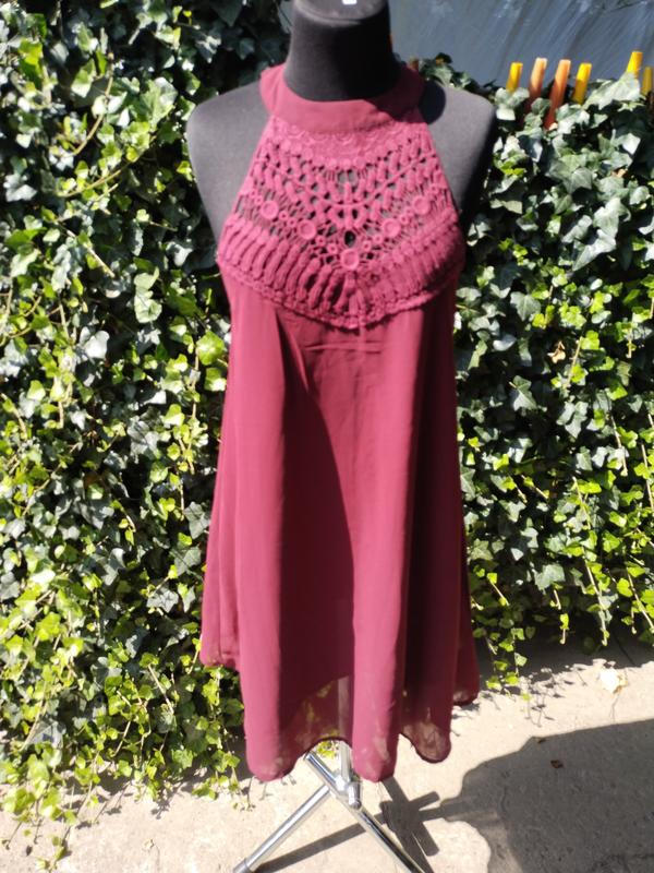 бордовое короткое платье