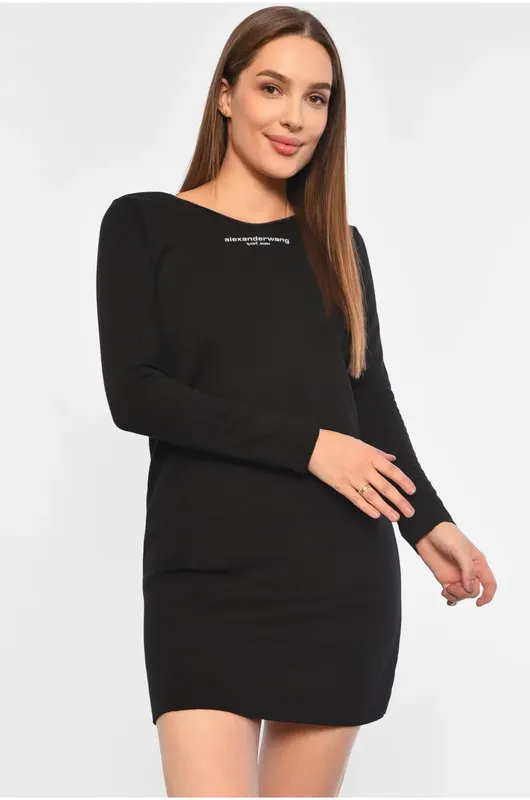 Утепленное платье на меху с принтом с надписью