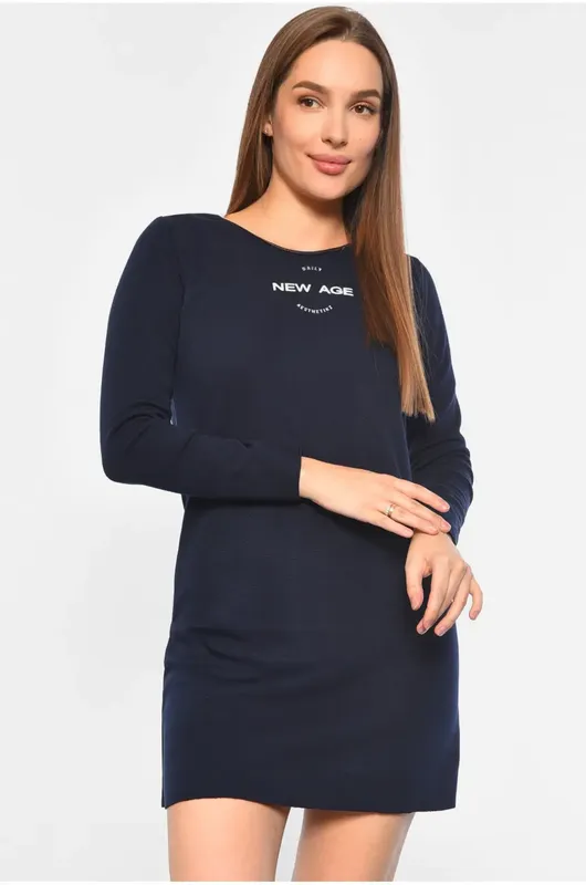 Утепленное платье на меху с принтом с надписью