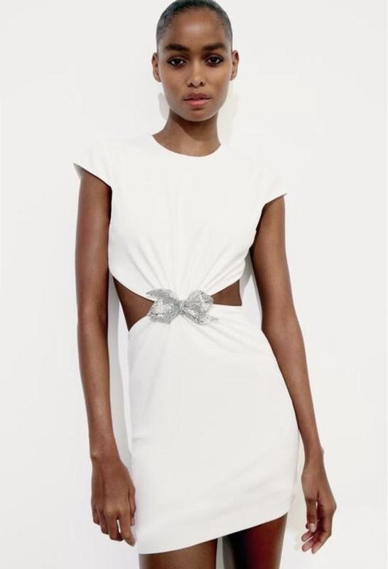 Белое платье Zara на поясе с декоративным блестящим бантиком. Размер L, но может и быть на M.Оригинал Хорватия